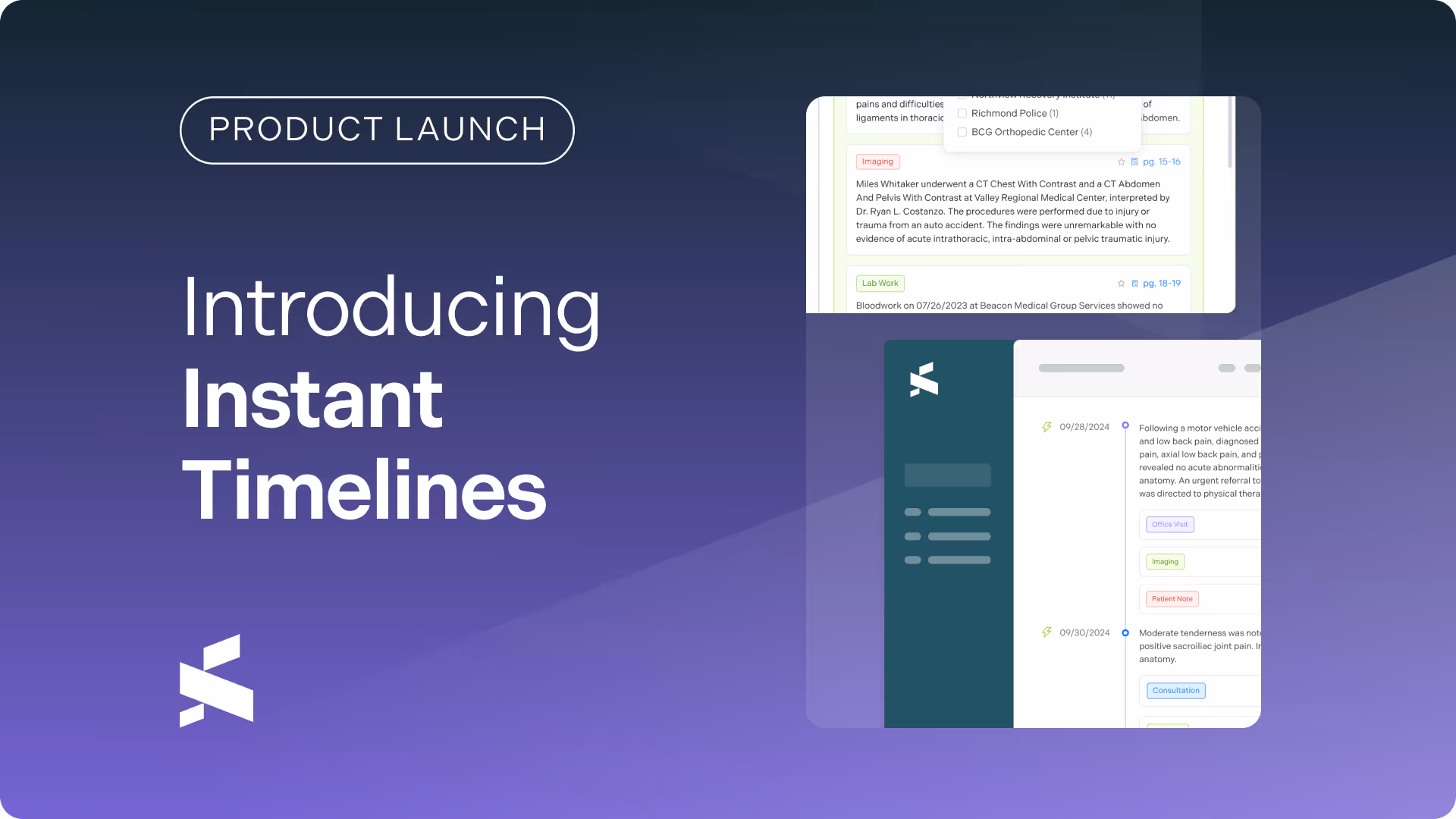 - Instant Timelines – launched earlier this summer – now generates same-day medical chronologies fully integrated with bills and ties every injury back to the record.