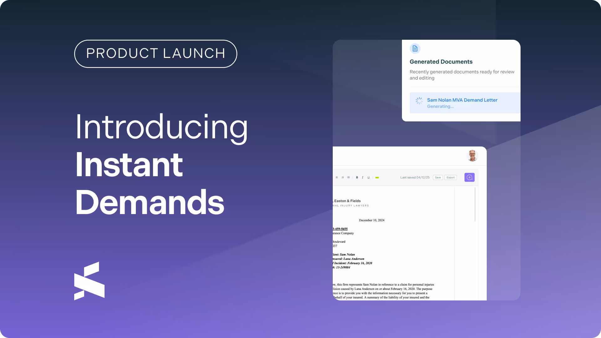 "Firms often face a trade-off between speed and accuracy in creating demand letters, a critical step in the process of bridging evidence and justice. This is not just about drafting letters more efficiently. With Supio Instant Demands, we are showing practicing law in the AI era means faster, more precise, and better outcomes for clients.’’