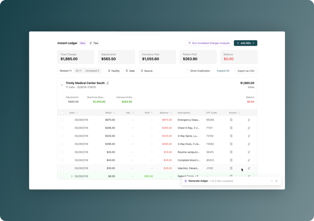 - Instant ledgers and liens: for medical expenses incurred by client, providers, government, etc.
