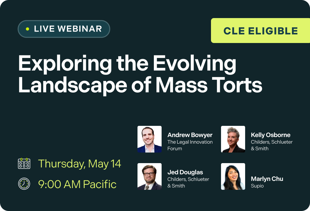 In this webinar, legal professionals will explore how shifting regulations, AI-driven technology, and evolving funding dynamics are reshaping the mass tort landscape — and what firms need to do to stay competitive and compliant.