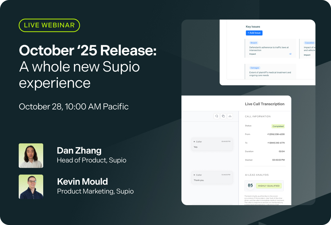 We're walking through what's new in Supio’s October ‘25 release. New powerful features, how they work, and what it means for the way you prep cases. All powered by CaseAware AI, the most accurate AI for personal injury firms.